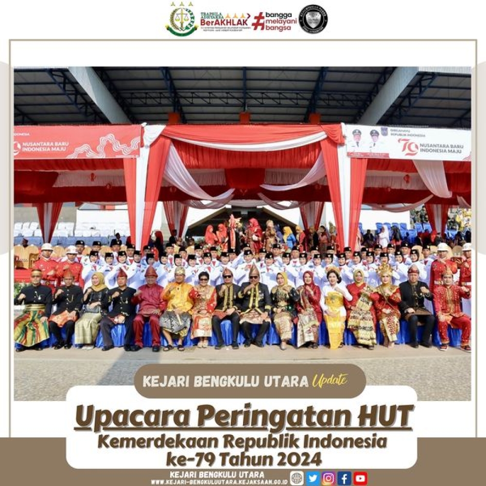 Kepala Kejaksaan Negeri Bengkulu Utara, Ristu Darmawan, SH.,MH., bersama Unsur Forkopimda dan intansi vertikal serta OPD Kabupaten Bengkulu Utara melaksanakan Upacara Peringatan Hari Ulang Tahun Kemerdekaan Republik Indonesia ke-79 Tahun 2024 bertempat di Alun-alun Rajo Malim Paduko Kota Argamakmur, KabupatenBengkulu Utara.